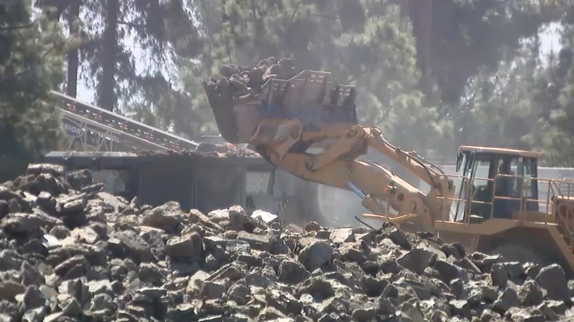 The US Army Corps of Engineers (USACE) has crushed concrete from a home that was destroyed in the fire in January. The shards being processed have been cleared by the Army as their property prepares for reconstruction.