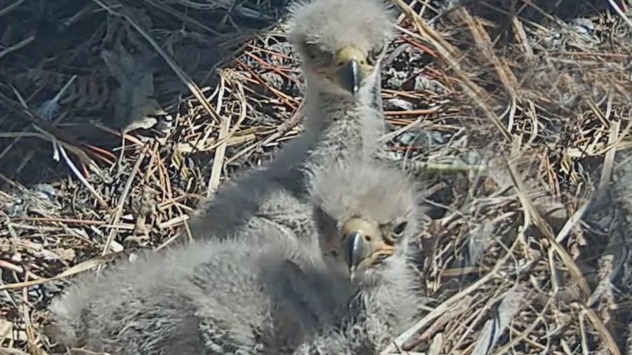 Friends from Big Bear Valley, which runs a 24/7 live stream on Bald Eagle Family’s Nest, held a naming contest for the two eagles on Friday.