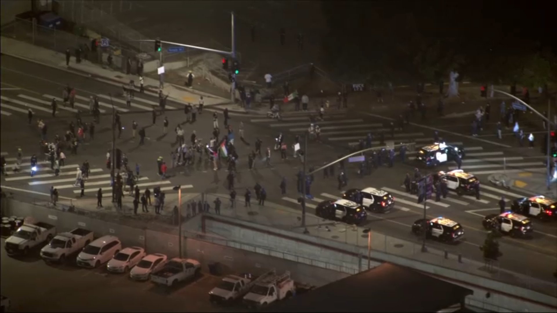 According to LAPD, the protest was declared an illegal assembly at 7pm. The protesters were asked to break up or be arrested.