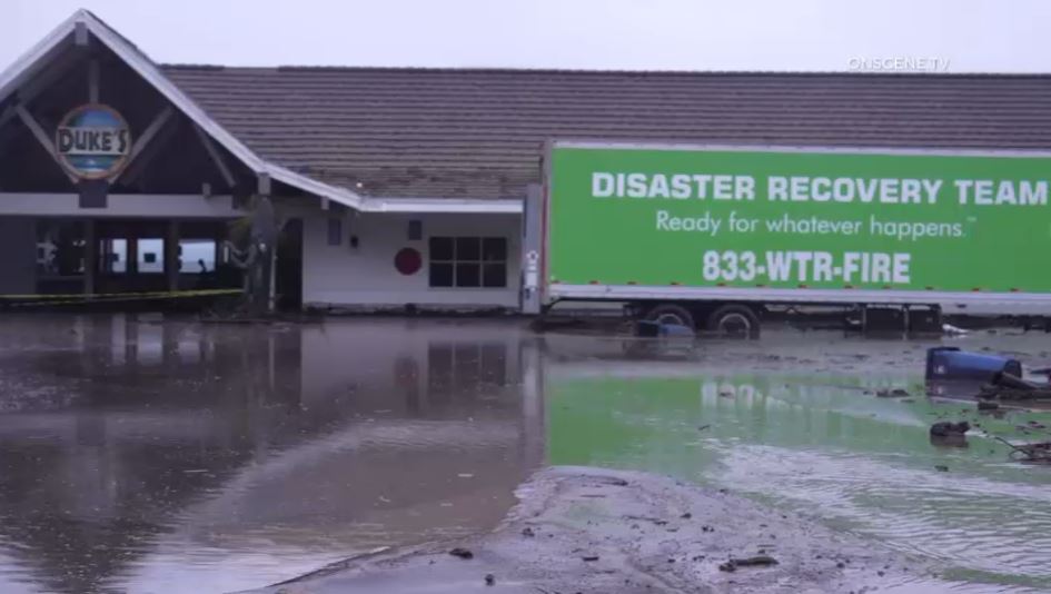 On Thursday, the coastal community took a major blow to the strongest storm of the season in Southern California. The occasional heavy rainfall times caused a landslide that sent mud, water and debris down the hills to PCH, sending it to Duke’s parking lot.