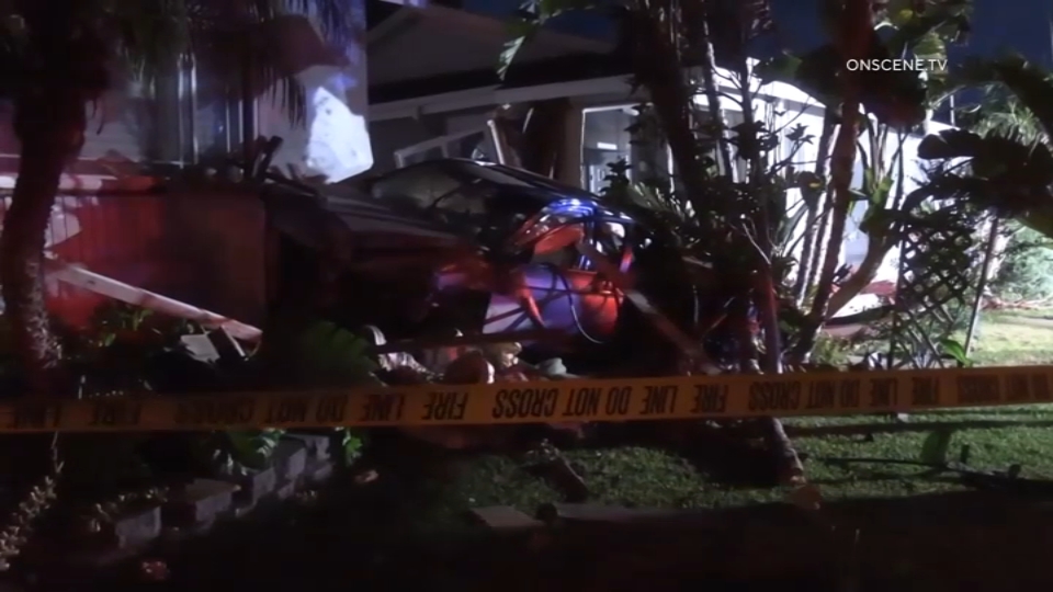 The late-night crash rocked a quiet Huntington Beach neighborhood on Friday, as speeding cars ran down the road and crashed into three homes.