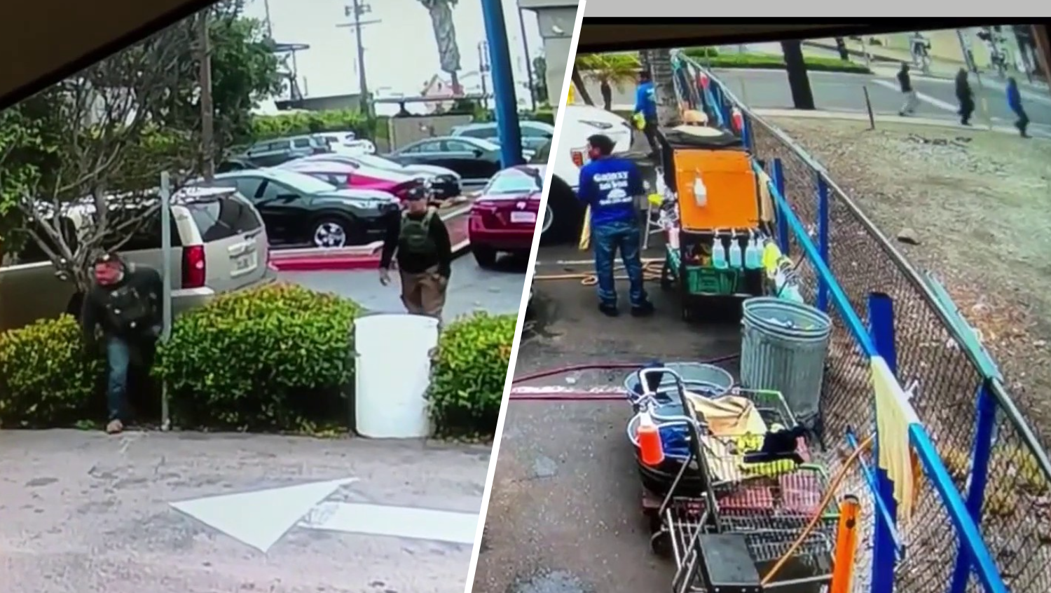 A few seconds later, you can see one of the agents running towards the employee. Some of them can be seen escaping on the far sidewalk. At least one employee was chased across the car park and across the street.